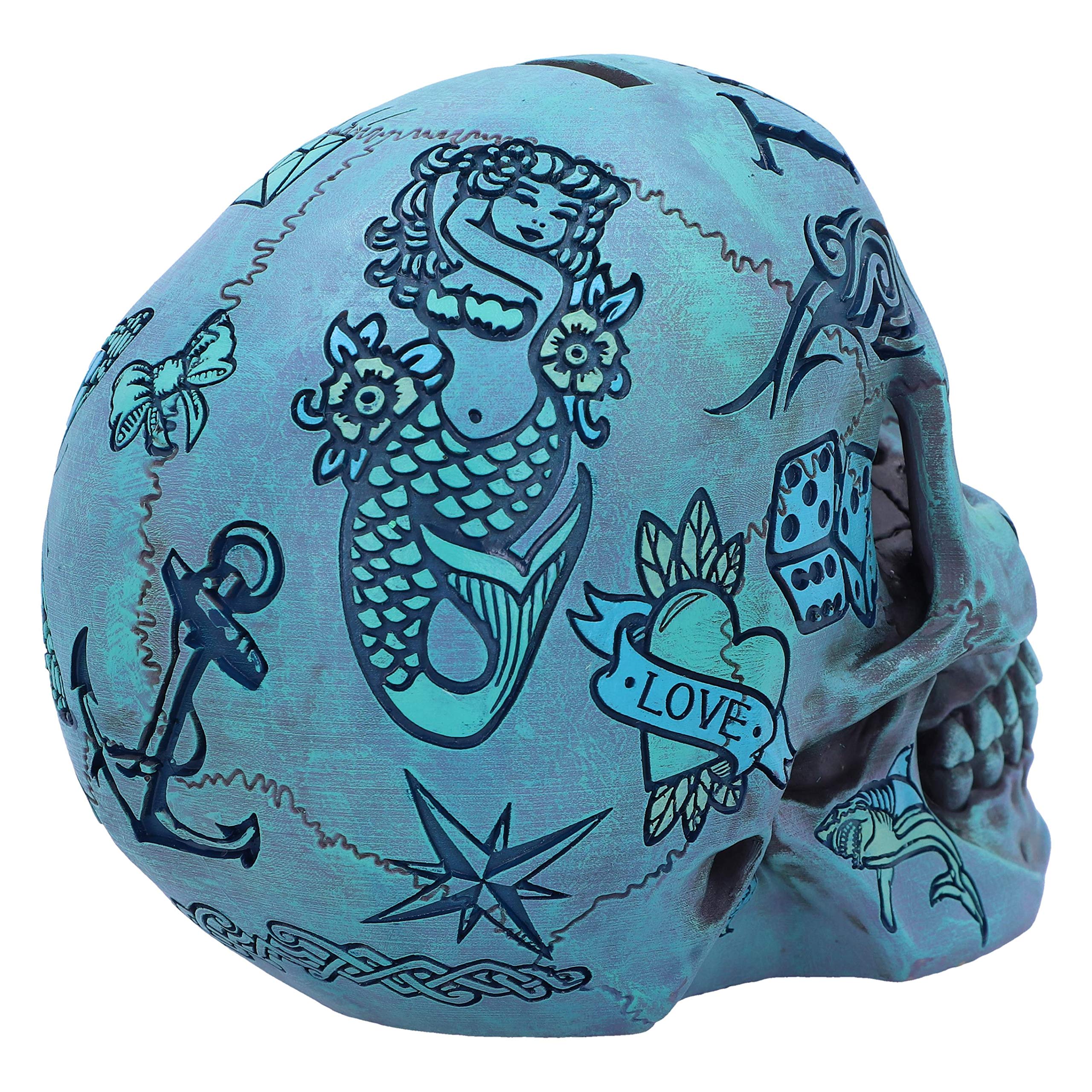 Nemesis Now Aqua Blue Traditional Tattoo Fund Skull Teschio Per Tatuaggi Tribali Colore Blu Acqua Poliresina Taglia Unica Amazon It Giochi E Giocattoli